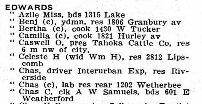 By 1916, at the age of 22, Charles has moved to Fort Worth, Texas.