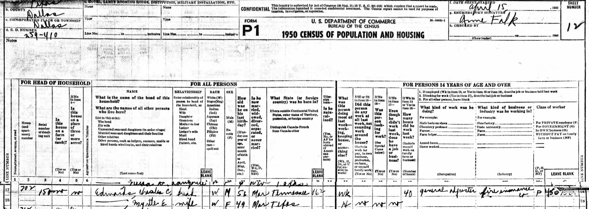 Charles, 56 years old and Myrtle, 49 years old, are still ling at 702 N Oak Cliff Blvd. He is a general adjuster for a fire insurance company.